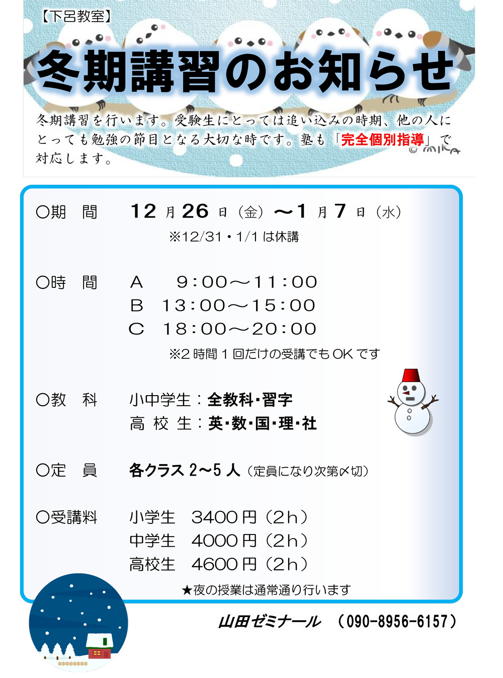 カテゴリー別アーカイブ "山田ゼミナール(下呂教室)"