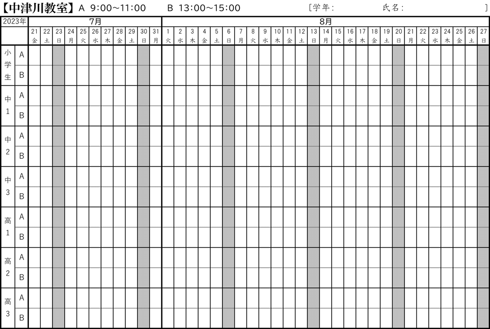 7月 7, 2023 【中津川教室】令和5年夏季講習のご案内 投稿者: yamada-ryoji にお知らせ, 山田ゼミナール(中津川教室) 山田ゼミナール中津川教室、令和5年「夏期講習」のご案内です。