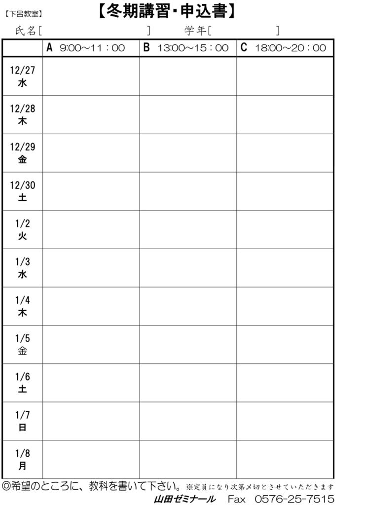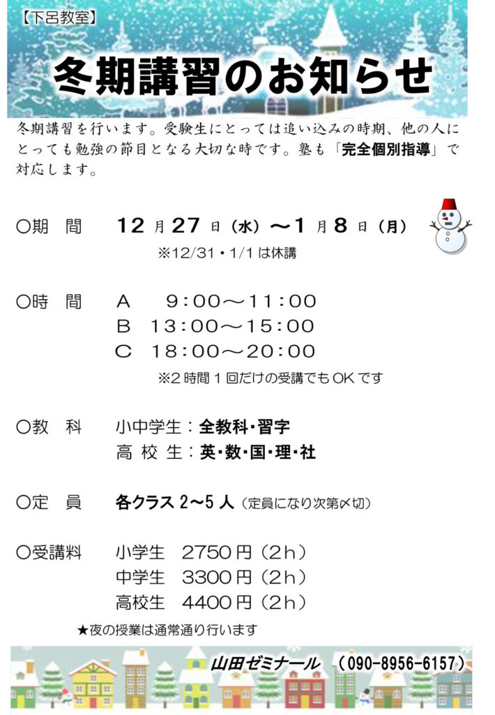 【下呂教室】令和5年冬季講習のご案内