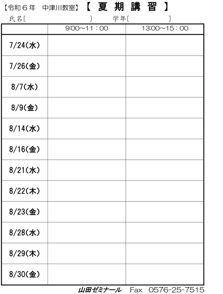 【中津川教室】令和6年夏季講習のご案内