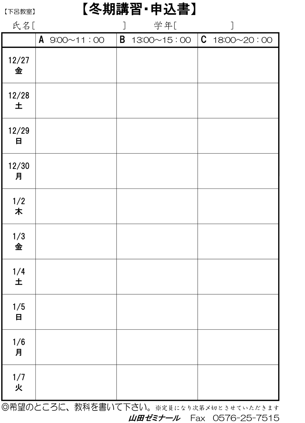【下呂教室】令和6年冬期講習のお知らせ