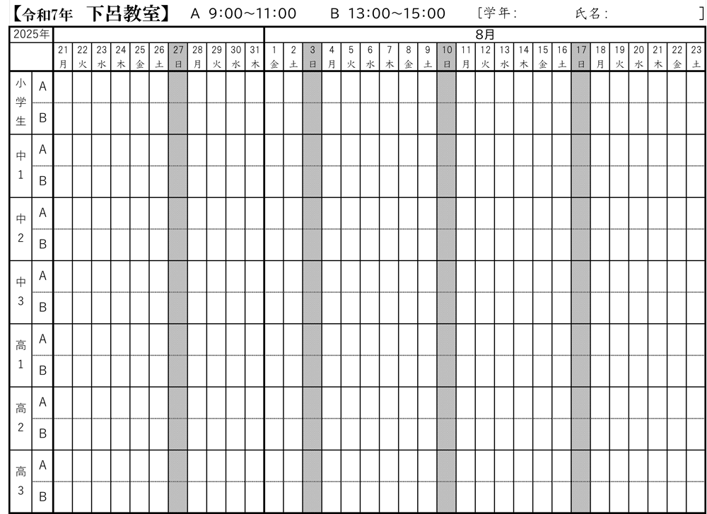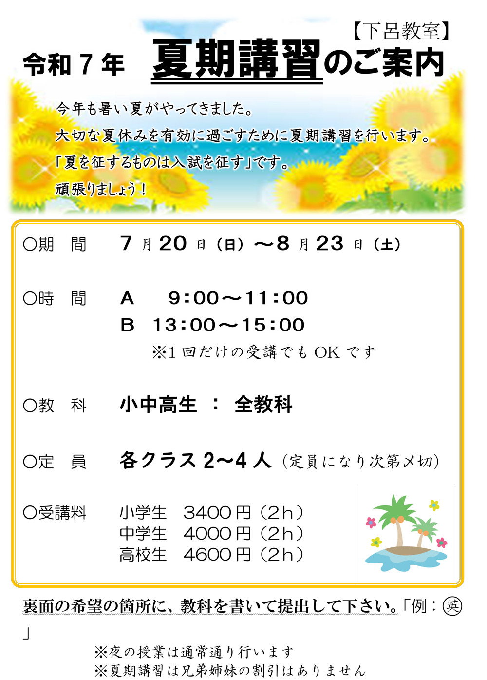 【下呂教室】令和7年夏期講習のお知らせ